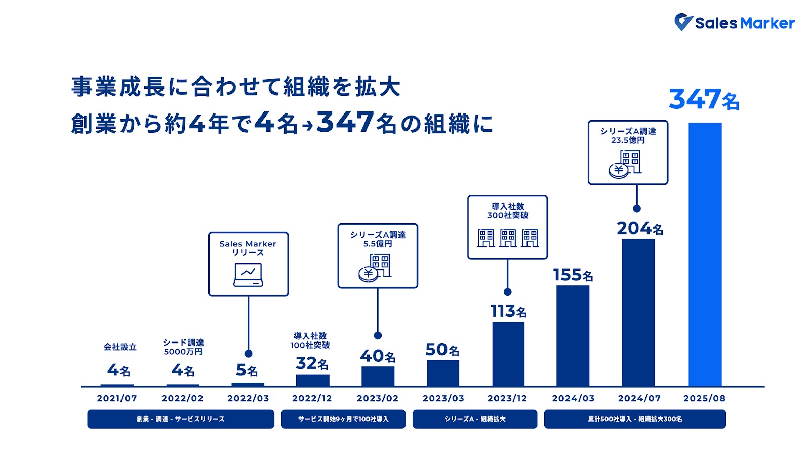 湊:次に、組織の拡大についてお聞きします。短期間で組織がグンと大きくなった印象があるのですが、創業時の4名から315名まで、どのように成長されたのでしょうか?(*2025年8月の最新数字では347名)